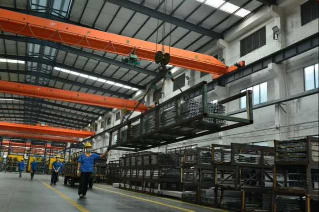 此外,华昌铝业积极响应国家“中国制造2025”战略,实现从制造到智造的转变。高的标准才能产生高的质量,公司共参与制修订国家标准17项,行业标准6项,是行业内参编标准最多企业之一;华昌铝业还是中国行业内第一家建成铝型材高层、高密度存储自动化立体仓库的厂家;第一家开发应用到长沙国产磁悬浮列车高性能导电轨铝型材的厂家,填补了国内空白,整体技术达到国际先进水平。